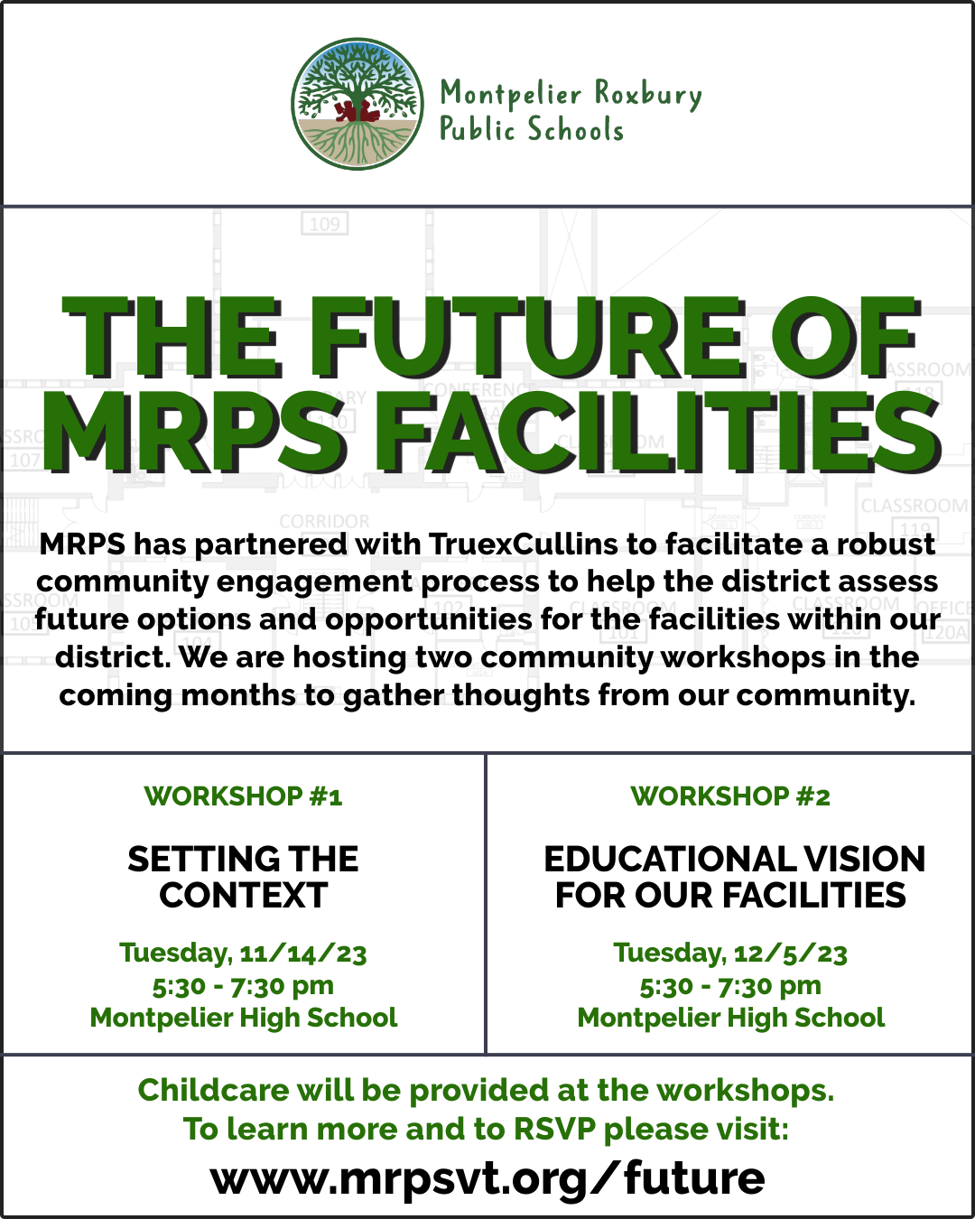 During the community forums held by the City of Montpelier questions regarding the school district arose. Much like the City of Montpelier, Montpelier Roxbury Public Schools is committed to ensuring our facilities are as resilient to flooding as possible. We are also committed to our buildings evolving to meet the needs of our learners both today and in the future. In that spirit, MRPS has teamed up with TruexCullins and Engineering Ventures to do a study regarding what it means to have climate resilient buildings that meet the needs of our learners.